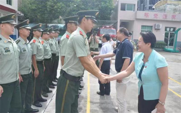 “致力于加快經濟社會事業發展的同時,每年‘春節’和‘八一’期間,劉飛霞等縣四大班子主要領導都會到駐漢部隊進行走訪慰問,看望部隊官兵。近年來,累計開展走訪慰問3萬余人次,為部隊和退役官兵送去各類慰問品80萬元。”縣委常委,縣人武部部長吳杰說,“針對駐軍戰備訓練和生活中的實際困難,劉飛霞還召開專題議軍會議,為部隊官兵免費安裝更換空調、熱水器、晾衣房等,定期為隨軍家屬每月發放生活補助,解決隨軍家屬子女入學等問題,切實解除了駐軍官兵的后顧之憂,有效增強了軍人的榮譽感和使命感。”