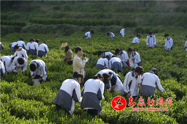 推廣“田間課堂”,將勞動教育實踐路徑延伸到鄉村田間。城關鎮三元村茶園是漢陰中學校外勞動教育實踐基地,4月8日清晨,茶園基地迎來了一群特殊的“采茶人”,正是漢陰中學師生代表們挎著采茶裝備,穿梭在茶園間,指尖輕捻、摘取嫩芽,頓時打破了茶園清晨的寧靜。