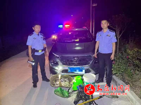 7月31日,漢陰公安雙乳派出所接到護河信息員反映夜間有人在轄區三同村段月河內電魚的線索后,該所組織警力進行核查布控,23時許,民警發現有兩名嫌疑男子正在河道內使用電瓶裝置以電魚方式進行非法捕撈。兩名嫌疑人發現民警后,立即丟棄電瓶裝置、漁獲物等作案工具逃離,經過民警細致排查,現場查扣嫌疑車輛一臺,鎖定了犯罪嫌疑人。