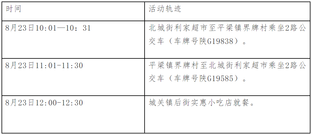 根據流調情況,現將西安市確診病例涉及密切接觸者在漢陰縣的公共場所活動軌跡公布如下: