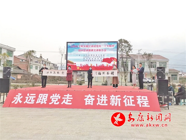 漢陰縣將黨的二十大精神宣講與新時(shí)代文明實(shí)踐有效結(jié)合,組建“文明實(shí)踐宣講團(tuán)”,每場(chǎng)宣講由5名宣講團(tuán)成員采取“拼盤式”宣講,理論骨干圍繞黨的二十大精神講理論,先進(jìn)模范結(jié)合好人事跡講道德,一線干部圍繞“三農(nóng)”安排部署講政策,基層干部群眾圍繞“我們這十年”講變化,志愿者圍繞惠民服務(wù)講文明實(shí)踐。同時(shí),“五講”活動(dòng)中穿插進(jìn)行文藝宣傳、為模范贈(zèng)送書法作品、有獎(jiǎng)問答等環(huán)節(jié),進(jìn)一步增強(qiáng)了基層宣講的感染力、吸引力。
