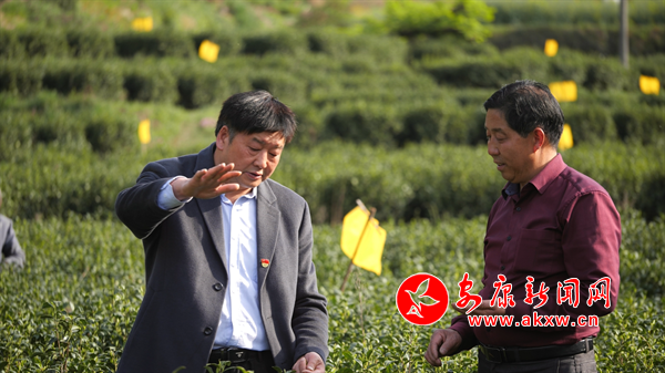 “今年的春茶結束后,你要抓緊剪枝,剪完以后枝條越長,明年發的芽頭就越多、芽頭就越壯,這樣茶葉才能有好的品相……”在漢陰縣三元村茶園內,縣茶葉專家吳大春一邊查看茶葉種植情況,一邊對茶廠負責人提出茶園修剪的建議。