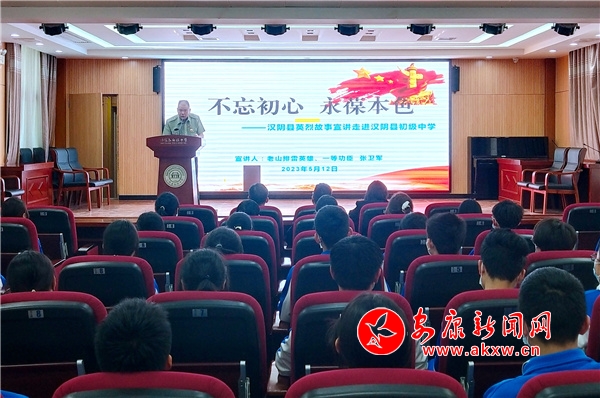 本網訊(通訊員 蘭本波)追溯五月之紅,續寫紅色華章。5月12日,由漢陰縣退役軍人事務局開展的英烈故事“進機關、進學校、進社區、進軍營、進企業”巡回宣講活動走進漢陰縣初級中學。