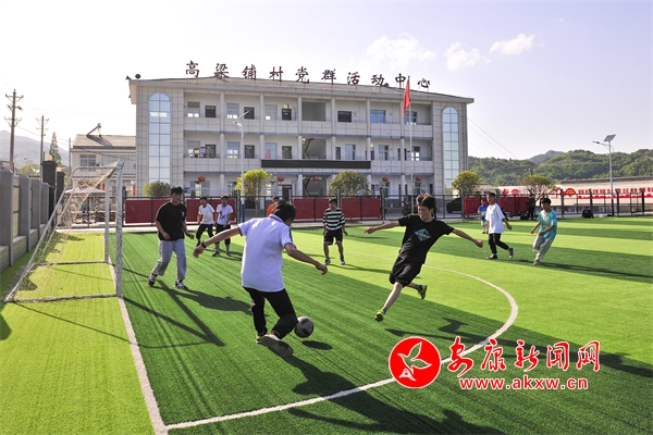 4月25日,平梁鎮高粱鋪村村民在漢陰縣平梁西區社會化足球場踢足球,現場熱火朝天。