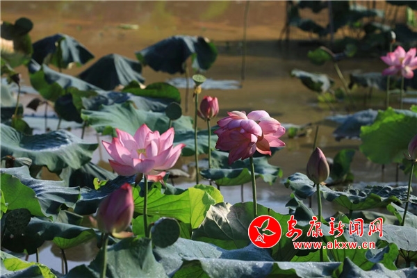 “我昨天早上在塘子里采蓮蓬的時候,突然發現了一株并蒂蓮,感覺非常的驚奇,然后在網上查閱資料,得知它的發生概率是十萬分之一,于是我就拍了些照片發到朋友圈里,我從小到大大大小小的荷花都見過,而且這個塘子已經種了九年了,在現實生活中這種并蒂蓮是第一次見到。”據并蒂蓮的發現者況濤回憶,難得一見的并蒂蓮是7月22日發現的,在陽光照耀下,并蒂蓮一枝獨秀,它的一枝花莖上長出兩個大小相似的粉紅色花苞,嬌艷欲滴,格外搶眼。QNn安康新聞網