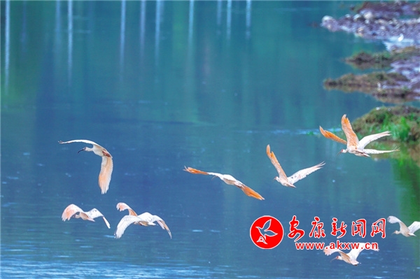 2010年,漢陰縣首次在澗池鎮洞河河畔發現朱鹮;2013年,朱鹮在漢陰縣雙河口鎮鳳柳村清泥河畔首次繁衍成功。隨著近年來漢陰縣生態環境的持續改善,先后在觀音河鎮、澗池鎮、蒲溪鎮、鐵佛寺鎮、城關鎮、雙乳鎮等多地發現朱鹮的倩影。截至目前,在漢陰共發現朱鹮110余只。