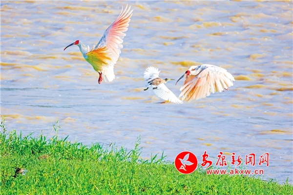 “現在這河壩邊上的朱鹮越來越多了,以前就能看到幾只,現在經常能看到一大群,一二十只在河壩邊上找食吃,它們也不怕人,我們有時候在河壩邊上種莊稼,逛的時候都能看到,離我們很近……”作為國家一級保護動物,朱鹮被視為國鳥,被譽為“東方寶石”。近日,有村民在漢陰縣月河河畔發現20多只朱鹮在河邊漫步覓食的悠閑畫面,美不勝收。隨著漢陰的生態不斷向好,不僅野生朱鹮的數量穩步增長,其活動范圍亦在不斷擴大。