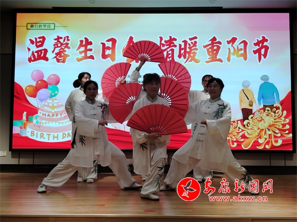 演出在優(yōu)美的舞蹈《花樣功夫扇》中拉開(kāi)了帷幕,先后上演了多個(gè)老年人喜聞樂(lè)見(jiàn)的節(jié)目,清脆悅耳的歌聲、輕松歡快的舞蹈,老人們聽(tīng)得入神,看得喜悅,整個(gè)活動(dòng)中,掌聲雷動(dòng),笑聲不斷。壽星們?cè)跉g快的歌聲中共同許下美好的生日愿望,社區(qū)干部為壽星們戴上生日皇冠,將精心準(zhǔn)備的蛋糕、禮品分送到每位老人手上,甜蜜也蔓延在老人們的臉上。
