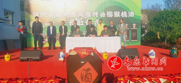 10月22日下午,在漢陰縣蒲溪鎮小街工業園區分會場,參會人員共同見證了漢陰獼猴桃酒開缸,并通過簽約銷售和直播帶貨的形式,助力獼猴桃推廣銷售。