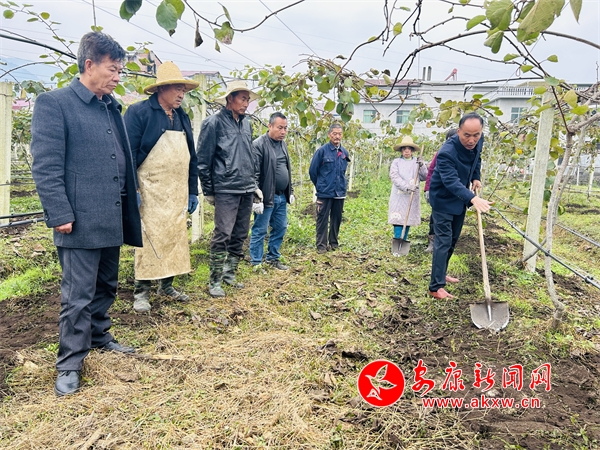 “獼猴桃園冬季管護(hù),增施有機(jī)肥是改良土壤透氣性、增加土壤有機(jī)質(zhì)含量的重要環(huán)節(jié),施肥的時(shí)候一定要注意,要給樹(shù)上多少肥料,主要要參考一下樹(shù)體的大小,還要看一下它土壤的肥沃情況……”在蒲溪鎮(zhèn)溪畔社區(qū)的獼猴桃種植基地,縣獼猴桃工作站的技術(shù)人員正在給基地務(wù)工人員現(xiàn)場(chǎng)講解獼猴桃施肥的標(biāo)準(zhǔn)和要求,講解結(jié)束后,工人們便分散到不同的獼猴桃種植地塊中,有條不紊地進(jìn)行著施肥等管護(hù)工作。獼猴桃冬季管護(hù)尤為重要,通過(guò)開(kāi)展獼猴桃冬季管護(hù)工作,可以加深農(nóng)戶對(duì)獼猴桃冬季管護(hù)技術(shù)的掌握,也為獼猴桃安全越冬,實(shí)現(xiàn)豐產(chǎn)豐收、助力產(chǎn)業(yè)發(fā)展提供保障。