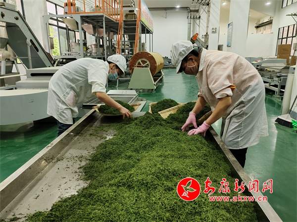 在漩渦區域加工廠的制茶生產車間內,鮮嫩的茶葉經過殺青、揉捻、干燥、提香等程序,醇香的茶便新鮮出爐。“今年在開采之前,鎮政府面向茶葉產業合作社負責人和技術骨干組織了一次統一的培訓,對采摘手法,采摘標準進行了統一的指導培訓,便于我們后面的生產和后期產品的把控。”茶廠負責人馮衛平說。
