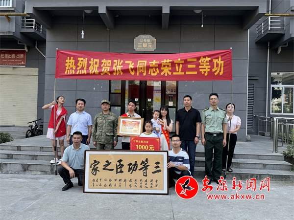 一張喜報、一枚“三等功”軍功章、一個立功牌匾、1000元的慰問金。在熱烈喜慶的氛圍中,一份份“喜悅”送到軍人軍屬家門口,對營造支持國防事業(yè)、尊重關(guān)愛功臣模范的社會氛圍意義非凡,左鄰右舍聞訊而來、交口稱贊。慰問組與立功受獎軍人家屬進行了親切交談,感謝他們?yōu)閲液蛙婈犦斔土藘?yōu)秀人才,并詳細了解家里生產(chǎn)生活情況,希望他們繼續(xù)支持孩子在部隊安心服役,為國防和軍隊現(xiàn)代化建設(shè)做出更大貢獻。