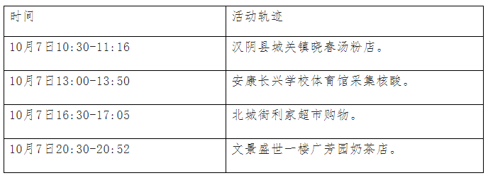 根據流調情況,現將外市核酸檢測陽性病例涉及密切接觸者在漢陰縣的公共場所活動軌跡公布如下:avD安康新聞網