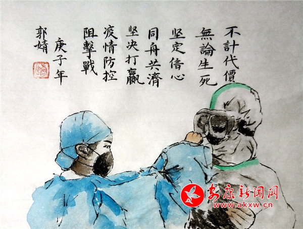漢陰縣初級中學的老師們紛紛揮毫潑墨將心中對抗疫一線工作者的牽掛繪就成一幅幅優(yōu)秀的繪畫及書法作品,為所有逆行的英雄禮贊,為防控疫情凝聚正能量。“舉國同戰(zhàn)……