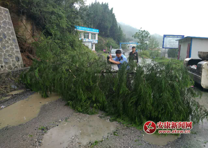 漢陰:大樹橫路中通行受阻 警民聯手除“路障”