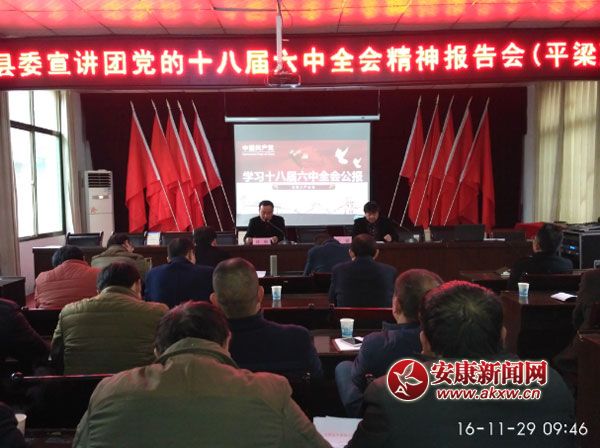 安康新聞網訊(通訊員 陳小磊)11月29日上午,漢陰縣委宣講團到平梁鎮集中宣講黨的十八屆六中全會精神。該鎮黨委書記主持宣講會,縣委宣講團成員、縣紀委常委王斌……