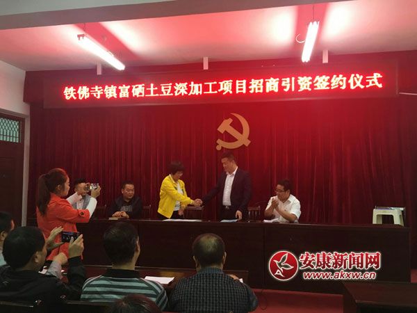 隨著鐵佛寺鎮黨委書記吳大美與陜西領航實業有限公司總經理李文簽訂了《富硒土豆深加工項目招商引資協議書》,標志著漢陰首家富硒土豆深加工企業成功落戶鐵佛寺鎮……