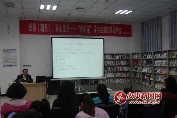 在世界讀書日到來之際,4月24日晚上7時,漢陰縣“彩虹花”讀書會迎來了第四期讀書分享,主講嘉賓李偉老師在縣圖書館四樓做了“感悟《朝圣》”的主題講……