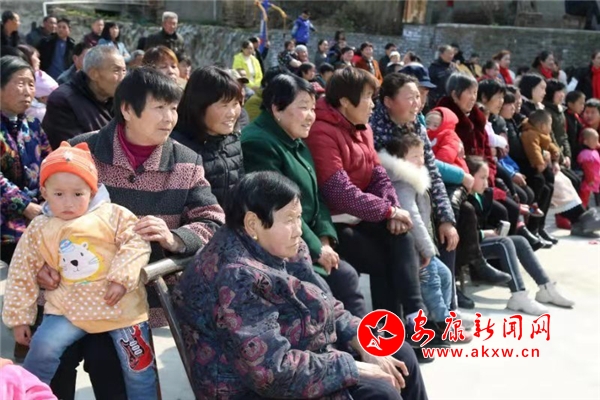 這場"幸福都是奮斗出來的"新民風(fēng)文藝演出在唐灣村"百姓大舞臺"拉開帷幕,節(jié)目舞蹈《開門紅》《祝福祖國》《幸福安康》;眉戶劇《梁秋燕》;快板《說唱安康新民風(fēng)》;小品《豬八戒背媳婦》《幸福一家人》;小戲《黃四姐》;表演唱《大家喜歡》《逛唐灣》《五只小船》《龍船調(diào)》;二人轉(zhuǎn)《小拜年》;黃梅戲《夫妻觀燈》;道情《毛驢》等深受群眾喜愛,節(jié)目精彩紛呈,現(xiàn)場處處洋溢著歡樂祥和的氣氛,給觀看演出村民帶來了一場視聽盛宴。村民唐志海說:"我在漢中創(chuàng)業(yè)多年,今天觀看了這場勵志文藝演出,節(jié)目實(shí)惠、通俗易懂、很接地氣"。村黨支部書記唐志亮說:"唐灣村是全市第一年已脫貧村,通過黨建引領(lǐng)新民風(fēng)建設(shè),大力弘揚(yáng)誠、孝、儉、勤、和,遵紀(jì)守法、精神文明建設(shè),精準(zhǔn)扶貧工作著力扶貧扶志、美麗生態(tài)鄉(xiāng)村、族規(guī)家訓(xùn)、經(jīng)濟(jì)發(fā)展等讓村民的幸福指數(shù)不斷提升,日子越過越紅火"。八十五歲高齡退休教師唐祖勝說:"過去村里逢年過節(jié)放電影、玩彩船、耍火龍,文化生活豐富的很。可在最近幾年文化宣傳活動少了,閑人聚在一起就是打牌賭博,讓農(nóng)村社會風(fēng)氣變了樣,今年政府倡導(dǎo)禁止煙花爆竹燃放,所以百姓大舞臺文藝演出便成了一種新時尚。.
