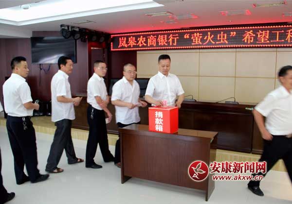 活動中,該行黨委書記、董事長熊宗新同志宣讀了倡議書,團縣委少先隊總輔導員員李思琦為嵐皋農商銀行“螢火蟲”希望工程“信合筑夢”信貸助學服務志愿隊授旗,農商銀行機關及城區全體職工為貧困大學生進行了現場捐款,共籌集現金一萬余元,;與此同時,在嵐皋農商銀行各大網點,也正在開展此項愛心捐助活動。