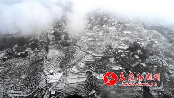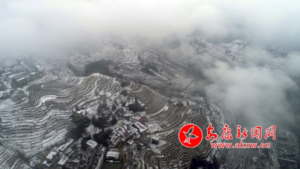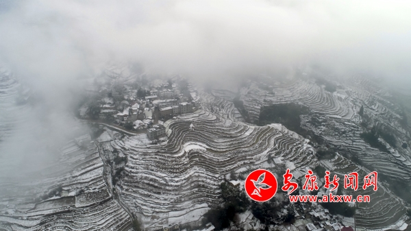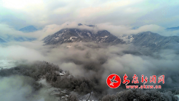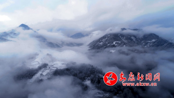 1月31日,嵐皋縣官元鎮雪后景色美輪美奐,山村宛若童話世界。(張昊 攝)