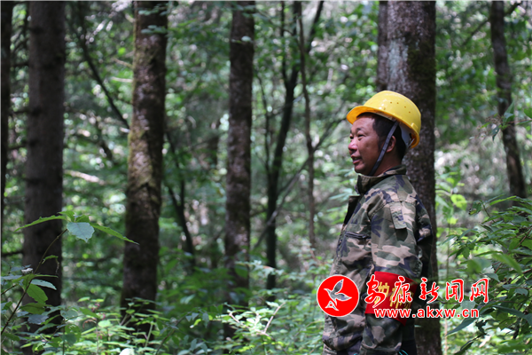上山途中,朱忠銀邊走邊四處觀察,有什么異常情況會及時排除并記錄下來,看到垃圾隨手撿起。日復一日,風雨無阻,他每天都要“鉆山溝、爬樹林”往返穿梭好幾次,管理著3200畝原始次生林,他用默默守護換來滿山蒼翠,守護著家鄉的這片綠色資源。