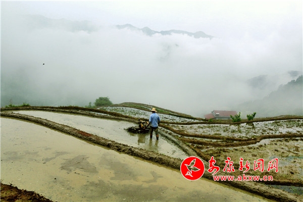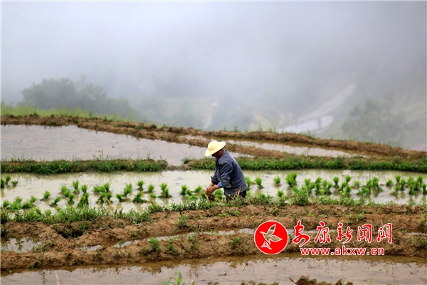 本網訊(通訊員 廖霖 馬桂芳)五月立夏農耕忙,插下秧的梯田田水如鏡,波光粼粼;青山、白霧、梯田、鮮花,寧靜和諧的田園美景里,錯落有致、形態各異的梯田與朝霞和農民忙碌勞作的身影一起構成了一幅美麗的畫卷,吸引不少游客和攝影愛好者前來觀賞拍攝。
