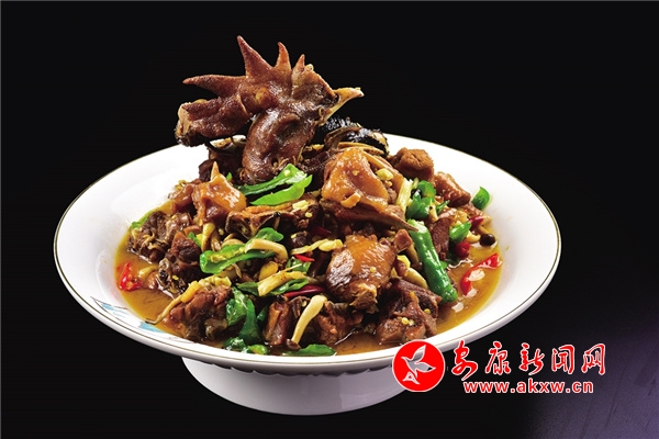 酸辣魔芋:是嵐皋特色名菜,也是當地非遺項目之一。以秋收后鮮魔芋漿汁為原料,加入堿水煮制,冷固后呈豆腐形狀,切塊后與當地泡菜一起大火翻炒而成。魔芋中的“堿”和泡菜中的“酸”完美結合,具有保護腸胃、排毒養顏、減肥瘦身的功效,同時還能降血糖、降血脂、降血壓。嵐皋民諺“要見好公婆,多吃鬼腦殼”,說的是姑娘吃了魔芋豆腐,瘦體健身、容光煥發,能得到公婆的好感。現代醫學認為,魔芋豆腐中含量最大的葡萄甘露聚糖,具有強大的膨脹力,超過任何一種植物膠的黏韌度,既可填充胃腸,消除饑餓感,又因所含熱量微乎其微,故能控制體重、減肥健美。此外,魔芋豆腐既能開胃化食,又能清除腸道垃圾,有防癌抗癌的神奇魔力,享有“防癌魔衣”“神奇食品”的美譽。