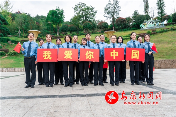 干警們著藍(lán)色檢察制服來到巴山珍稀植物園,以國旗為中心,組成一個(gè)大“五角星”,每個(gè)“角”上的干警心向國旗,莊重的同國旗合影,表達(dá)對祖國的祝福:“立檢為公,執(zhí)法為民,是我們的初心;堅(jiān)守法治,堅(jiān)守底線,是我們的使命。我們依法能動(dòng)履職,為大局服務(wù),為人民司法,努力讓人民群眾在每一個(gè)司法案件中感受到公平正義。祝祖國國泰民安,繁榮昌盛,我愛你中國。”rKK安康新聞網(wǎng)