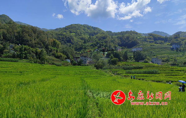 在嵐皋縣官元鎮“西部皇田”水稻農業園區,一架小型無人機來回穿梭于水稻田上空,對水稻進行飛防作業。據了解,嵐皋官元鎮共種植富硒有機水稻800余畝。目前,水稻……