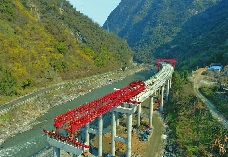安康至嵐皋高速公路建設順利推進。該高速公路是國家高速公路網G69銀百線的組成部分。圖為該高速公路八標段正在架設長2公里的嵐河高架橋。陜西日報記者 巨躍先攝……