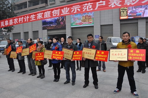 1月26日,嵐皋縣在小河口廣場舉行農村計生家庭創業示范戶表彰大會,對全縣48個精準扶貧村推選出的30戶計劃生育家庭創業示范戶進行表彰獎勵。農村計劃生育家庭“創……