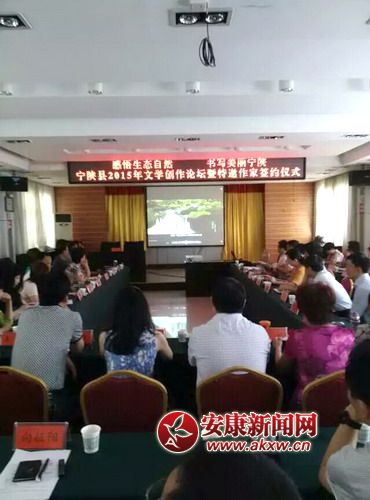 安康新聞網訊 (通訊員 宋顯云 唐紀創) 7月30至31日,“感悟生態自然,書寫美麗寧陜”寧陜縣2015年文學作家創作論壇暨特邀作家簽約儀式,在寧陜縣縣委會議室舉行。省作協副主席、市作協主席張虹,著名作家商子雍、陳長吟、楊常軍、蔣典軍、王曉渭、王妹英、王曉云、周養俊、姜華等14名省市作家,與本縣10名作家,齊聚一堂,開展文學交流活動。