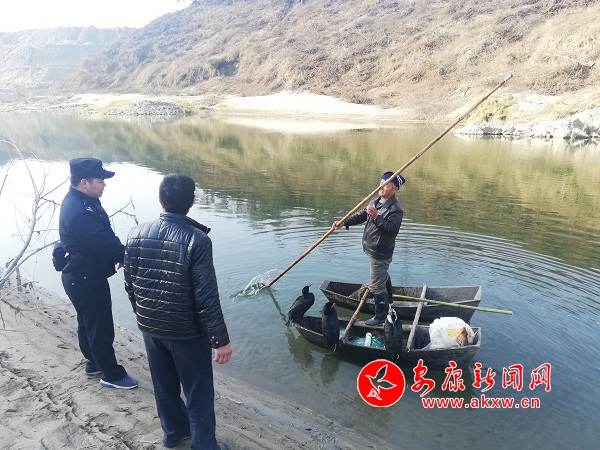 12月27日14時許,寧陜縣公安局筒車灣派出所接到群眾舉報:在寧陜縣梅子鎮安坪村汶水河道內有人用魚鷹和漁網捕魚。接警后,民警迅速聯合寧陜縣水利執法部門前往現場查處,現場查獲魚鷹3只,漁網6副、活魚20余斤,經詢問,張某、黃某2人對非法捕魚供認不諱,并稱時至年關,自己想通過捕魚搞點“年貨”。民警調查取證結束后,按照相關程序將案件移交至寧陜縣水利執法部門,由水利執法部門對上述違法行為處以罰款500元的行政處罰,對捕魚工具予以收繳,所捕獲的活魚進行放生。