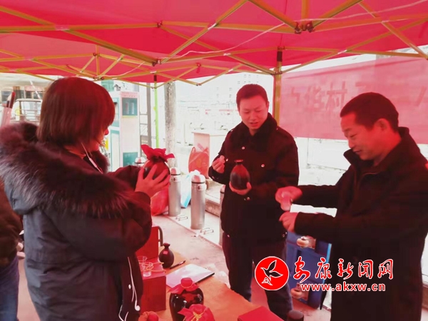 本網訊 (通訊員 黃倩 甄財鑫)年關將至,寧陜街頭張燈結彩,到處洋溢著春節的氣息,年貨一條街的第一個攤位格外的熱鬧,“大家都來看一看,瞧一瞧,中華村脫貧園區產品純高粱白酒‘子午小燒’,土法釀制、口感甘甜,可以免費品嘗喲。”寧陜縣民政局派駐中華村“第一書記”程建熱情的推銷著,身邊擠滿了前來購買的人群。tyL安康新聞網