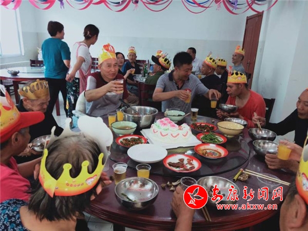當天,廚房組的“俏廚娘”為老人準備了二十多桌豐盛可口的飯菜,寧陜各界愛心人士也特意趕來陪20位壽星一起慶祝生日。高位截癱的王大平今年48歲,于2018年11月入住,他無不感慨地說:“這是我在敬老院過得第2個生日,每次都這么熱鬧,準備了這么豐盛的飯菜,還有蛋糕吃,住在敬老院真是太享福了。”