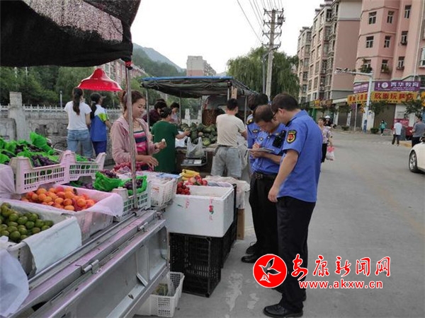 “大娘,您好!這個十字路旁不能擺攤,會影響行人通行,您可以到臨時過渡市場進行售賣,我們幫您把物品搬運到臨時過渡市場吧。”這是執法隊員在迎賓大道柔性執法的一幕。