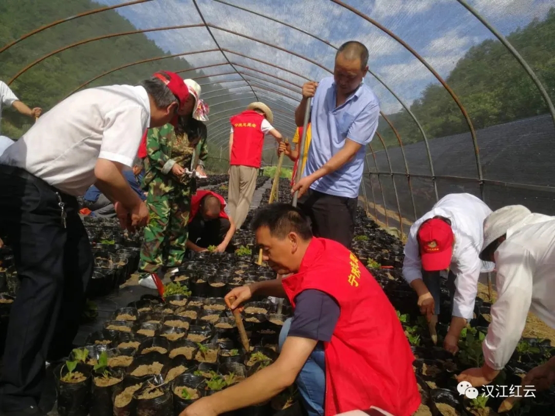 寧陜縣皇冠鎮山青水秀,花榮木茂,是寧陜重要的花木花卉現代農業產業基地,也是產業扶貧的示范園區。現有花卉園地400余畝,主產月季、繡球等品種。"田園黨校"落戶園區,園區更顯勃勃生機。6月23日皇冠鎮機關30余名黨員舉旗扛锨來到園區,與員工和村民們一起移栽花苖,松土施肥。