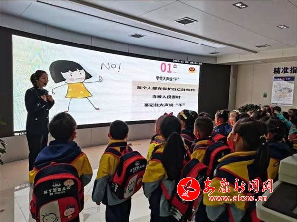 課堂上,110接警員通過PPT講解、觀看視頻監控畫面、播放宣傳片、現場模擬接報警對話等多種方式零距離與小朋友們互動交流,重點向小朋友們講解“什么情況可以撥打110、撥打110需要注意哪些問題、打通110電話時應該如何求助”等方面知識,引導小朋友在遇到危險時正確使用撥打110電話,教育小朋友尊法守紀,不亂涂亂畫、損毀公私財物,不亂穿馬路、遵守交通規則,小手拉大手,做平安建設的“小代言人”“小監督者”。