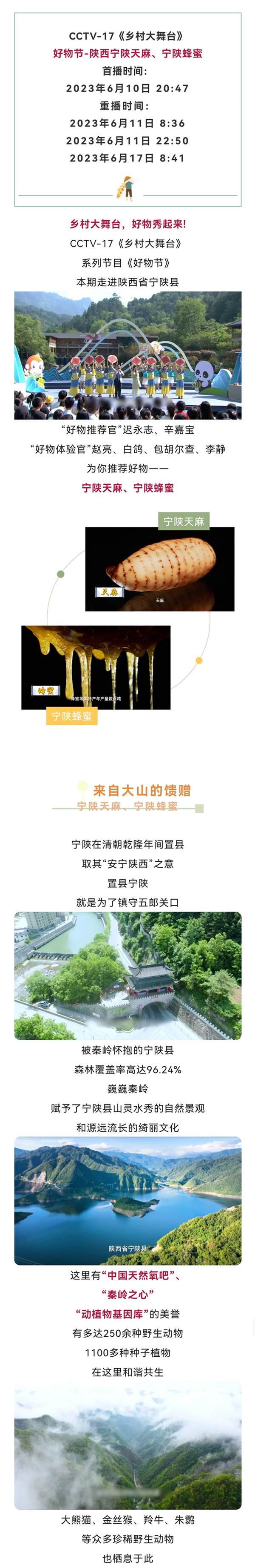 即將播出!寧陜天麻 蜂蜜6月10將在央視CCTV-17《鄉村大舞臺·好物節》播出
