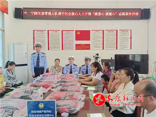 本網(wǎng)訊(通訊員 馮永紅)金秋時(shí)節(jié),開(kāi)學(xué)在即,8月30日,寧陜縣公安局交通管理大隊(duì)攜手社會(huì)愛(ài)心人士來(lái)到寧陜縣四畝地鎮(zhèn)嚴(yán)家坪村村委會(huì)開(kāi)展交通安全宣傳和“獻(xiàn)愛(ài)心 暖童心”志愿服務(wù)活動(dòng)。