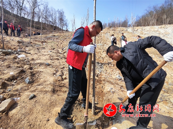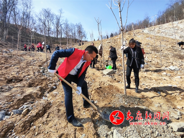 本網訊(通訊員 王輝)春回大地,萬物復蘇。3月12日,在寧陜縣簡車灣鎮許家城村黃連溝的山坡上,寧陜縣住建局黨員干部志愿者正在開展“學雷鋒·我行動·植樹護綠”主題黨日活動,為打造生態寧陜、提速鄉村振興揮鍬添綠。
