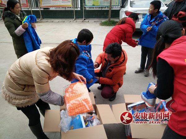 工作人員幫助孩子們穿上新衣活動結束合影安康新聞網訊(通訊員 杜明文)1月5日上午,寧陜縣義工聯兩名志愿者為梅子鎮5名困難家庭兒童送來了壹基金大禮包,這是孩……