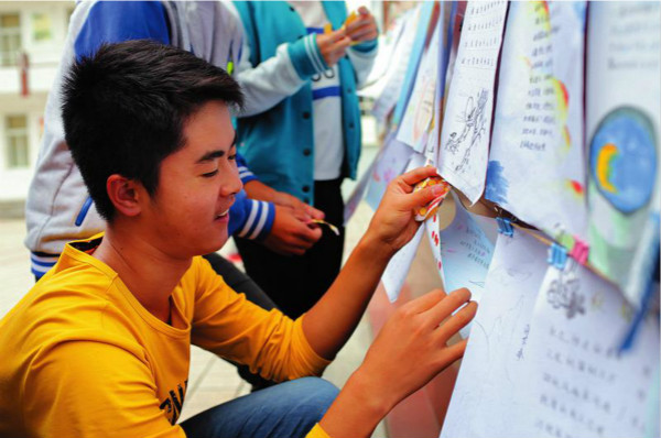 9月25日,為了迎接即將到來的中秋節(jié),秦嶺深處的寧陜縣城關(guān)高中在校園里舉行“中秋詩詞歌賦展”,吸引了全校學(xué)生的參加。活動(dòng)中,學(xué)生們自己動(dòng)手用繪畫、詩詞歌賦……