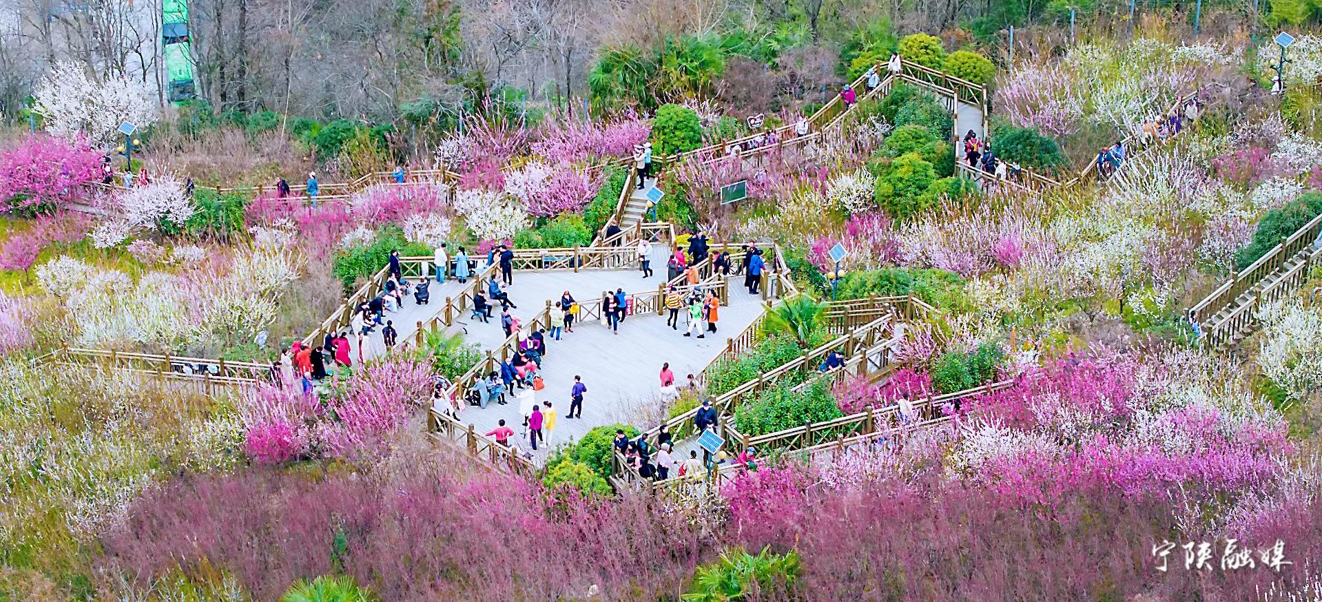 寧陜:子午梅苑景區迎來賞花客流高峰 入園賞梅游客近5000人