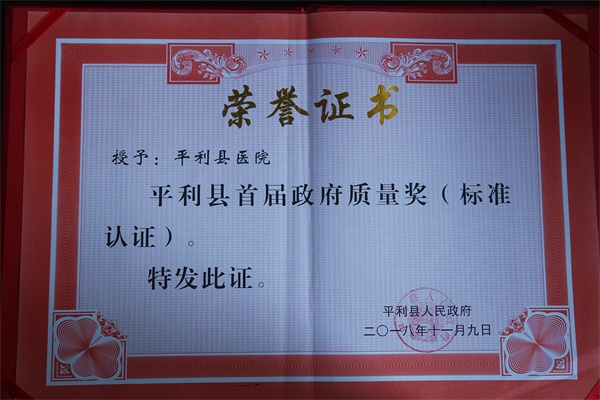 安康新聞網(wǎng)訊(通訊員 柯昌蘭 詹濤) 2018年11月9日,在平利縣人民政府召開的平利縣質(zhì)量大會(huì)上,平利縣醫(yī)院榮獲平利縣首屆政府質(zhì)量獎(jiǎng)“標(biāo)準(zhǔn)認(rèn)證獎(jiǎng)”。