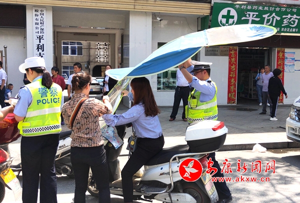 本網訊 (通訊員 蘇婷)針對夏季日照強度增大,縣城區道路出現大量摩托車、電動車加裝遮陽傘的現象,為有效預防和減少道路交通事故的發生,平利交警大隊城區中隊結合“三秦嚴查嚴防”攻堅行動工作,在城區開展摩托車、電動車加裝遮陽傘專項治理行動,確保城區道路交通安全暢通。