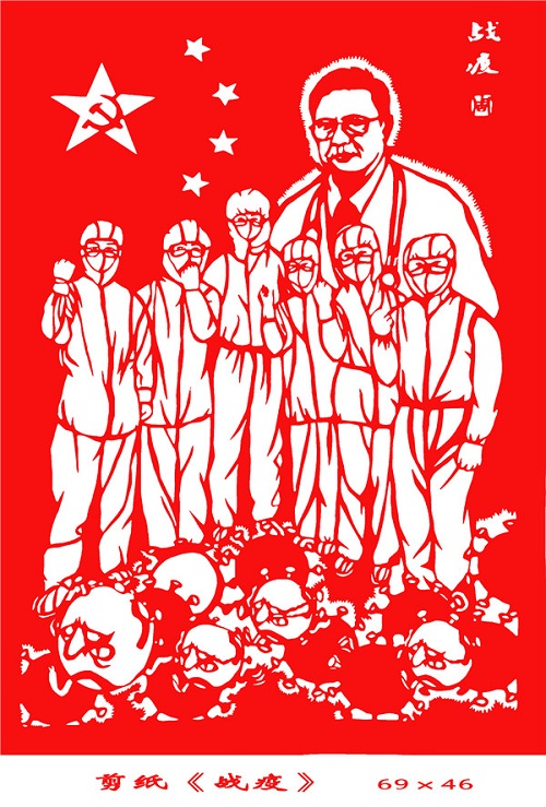 “每天從各個(gè)方面?zhèn)鱽?lái)抗擊疫情的很多新聞,心里備受感動(dòng)。作為共產(chǎn)黨員,我也要發(fā)揮個(gè)人特長(zhǎng),用剪紙記錄下這個(gè)時(shí)代。希望能夠通過(guò)剪紙這項(xiàng)傳統(tǒng)藝術(shù),向一線抗疫的英雄們表達(dá)敬意,為這場(chǎng)沒有硝煙的戰(zhàn)爭(zhēng)吶喊助威。”周玉珍老師說(shuō)。