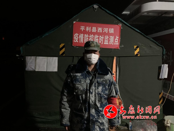 西壩村現役軍人陳玉沈在大疫面前,立書請戰,成為了一名疫情防控志愿者,被分派到平利西河鎮段家河監測勸返點,負責值班值守,監測勸返。