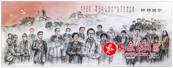 國畫作品《中國精神》主要歌頌在“眾志成城抗疫情”中的“逆行者”和各界英雄人士,反映抗擊疫情斗爭中涌現出來的感人形象和典型事件。